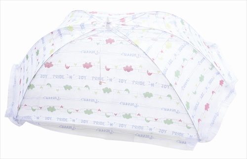 Pride ‘N’ Joy Mosquito Net has designs in printing and embroidery, available in white, pink and blue colors and sizes of M, L and XL. It offers protection for babies from small insects, flies and mosquitoes.